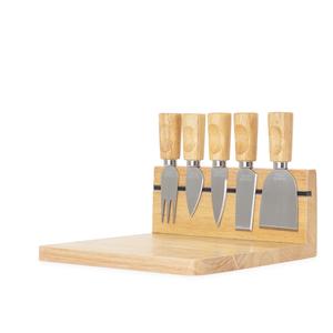 Descrição: Kit queijo bambu 6 peças, contém: faca reta com ponta, faca com ponta, faca reta, garfo, espátula e tábua de bambu. Há uma linha imãtizada no centro da tábua para posicionar as peças, parte inferior com borrachas anti-deslizantes. Medidas aproximadas para gravação(CxL): Utensílios(cabo) 4,5 cm x 2 cm – Tábua 18 cm x 19 cm Peso aproximado(g): 718 Tamanho total aproximado (CxL): Faca Reta com Ponta 12,2 cm x 2,6 cm - Faca com Ponta 11,3 cm x 2,6 cm - Faca Reta 12,5 cm x 2,6 cm – Garfo 12,1 cm x 2,6 cm - Espátula 12 cm x 4,6 cm- Tábua 20 cm x 20 cm x 7,7 cm