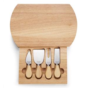 Descrição: Kit queijo 5 peças, contém: tábua de bambu com gaveta para acomodação dos utensílios, faca com ponta, faca reta, garfo e espátula. Largura 27,7 cm Medidas aproximadas para gravação(CxL): Tábua 16 cm x 22 cm - Cabo 2 cm x 2,5 cm Peso aproximado(g): 1070 Espessura 3,5 cm Altura 18 cm