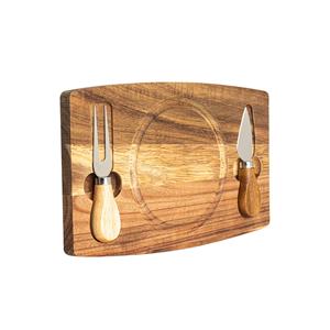 Descrição: Kit queijo 3 peças, contém: tábua de madeira com canaleta, faca com ponta, e garfo. Tábua com imã para encaixe e fixação dos utensílios. Largura 28 cm Medidas aproximadas para gravação(CxL): 12 cm x 12 cm Peso aproximado(g): 385 Espessura 1,5 cm Altura 17,1 cm