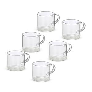 Descrição: Kit de seis xícaras feitas em vidro borossilicato, cada uma com capacidade de 100ml. Largura 7,8 cm Medidas aproximadas para gravação(CxL): 4 cm x 6,5 cm (xícara) - 13 cm x 21 cm (caixa) Peso aproximado(g): 313 Circunferência 7,2 cm Altura 5 cm