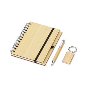 Descrição: Kit executivo ecológico 3 peças em estojo de papelão. Contém: chaveiro de bambu com detalhe em metal, caderneta em bambu, capa dura, com aproximadamente 65 folhas brancas pautadas, caneta de bambu com clipe metálico, elástico para lacre e suporte para caneta em nylon. Largura 19,3 cm Medidas aproximadas para gravação(CxL): 24 cm x 18 cm Peso aproximado(g): 409 Comprimento 25,3 cm Espessura 2,9 cm
