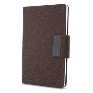 Descrição: Kit executivo com dois itens. O conjunto é composto por uma caderneta com capa dura em couro sintético revestido com fibra de café, no tamanho A5, com fechamento magnético, marca-páginas em fita de cetim e cerca de 80 folhas pautadas; e uma caneta metálica com detalhes do mesmo material, acionamento por rotação e carga esferográfica azul de 1,0 mm. Acompanha uma caixa de papelão com berço em espuma para a caneta. Largura 21 cm Medidas aproximadas para gravação(CxL): 21,5 cm x 20 cm (tampa da caixa) - 20 cm x 12 cm (caderneta) - 0,8 cm x 5 cm (caneta) Peso aproximado(g): 400 Profundidade 2,4 cm Comprimento 22 cm