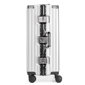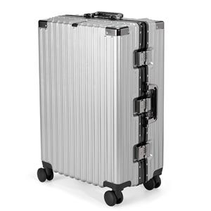 Descrição: Mala de viagem 77 litros feita em plástico com acabamento em alumínio, contém cadeado numérico TSA. Compartimentos internos com bolso telado, bolso plástico para itens molhados e cinta compressora para roupas. A mala possui duas alças de mãos, puxador retrátil com regulagem de tamanho e suporte para celular, suporte Porta-Bolsa, suporte para copo ou garrafa, quatro rodinhas 360º e apoios laterais. Largura 38,5 cm Medidas aproximadas para gravação(CxL): 53 cm x 34 cm Peso aproximado(g): 4175 Profundidade 26 cm Altura 58,5 cm