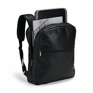 Descrição: Mochila confeccionada em couro, revestimento interno em poliéster, fechamento em zíper e capacidade máxima de 14 litros. Possui divisória interna para notebooks de até 14 polegadas, bolso frontal com fechamento em zíper, alça superior reforçada, alças ajustáveis para as costas com revestimento em tecido acolchoado e faixa de engate em nylon para acoplar em malas. Acompanha uma plaquinha em couro flexível presa a um cordão de nylon. Largura 32 cm Medidas aproximadas para gravação(CxL): 20 cm x 30 (mochila) - 5 cm x 3 cm (plaquinha) Peso aproximado(g): 749 Profundidade 10 cm Altura 38 cm