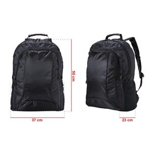 Descrição: Mochila de nylon 35 litros com dois compartimentos e bolsos laterais em malha. Possui fivelas laterais para regulagem de tamanho e duas alças de mãos, sendo uma delas reforçada com pegador plástico. Largura 33 cm Medidas aproximadas para gravação(CxL): 31 cm x 15 cm Peso aproximado(g): 523 Profundidade 14 cm Altura 47 cm