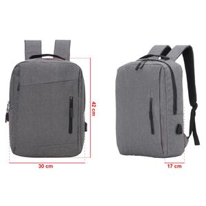 Descrição: Mochila em nylon com capacidade máxima de até 17 litros. Possui três compartimentos, sendo o principal com divisórias para notebooks de até 15,6 polegadas e bolsos internos em diferentes tamanhos. Conta ainda com bolso lateral e suporte USB externo. Largura 30 cm Medidas aproximadas para gravação(CxL): 23 cm x 18 cm Peso aproximado(g): 472 Profundidade 12 cm Altura 40 cm