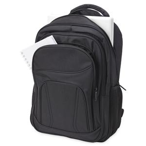 Descrição: Mochila de nylon 30 litros com três compartimentos, sendo o principal com bolso para notebook 15,6.Com bolsos laterais telados, a mochila possui alça para encaixe em malas de viagem, duas alças de mãos e alças para as costas com revestimento espumado. Acompanha plaquinha metálica. Largura 28 cm Medidas aproximadas para gravação(CxL): 1,8 cm x 4,3 cm Peso aproximado(g): 617 Profundidade 19 cm Altura 41,5 cm