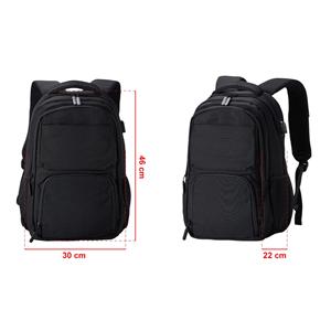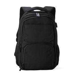 Descrição: Mochila de poliéster 28 litros com seis compartimentos, sendo o principal com bolso para notebook 15,6 e tablet 12,4. Com divisórias internas para acessórios e porta chave, a mochila possui adaptador USB externo, bolsos laterais telados, duas alças de mãos, área costada e alças para as costas com revestimento espumado. Largura 31 cm Medidas aproximadas para gravação(CxL): 10 cm x 20 cm Peso aproximado(g): 786 Profundidade 15,5 cm Altura 43 cm