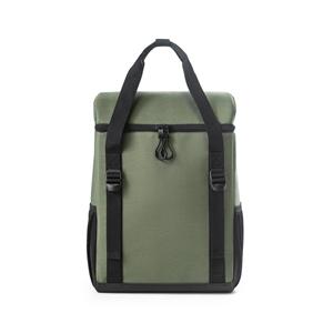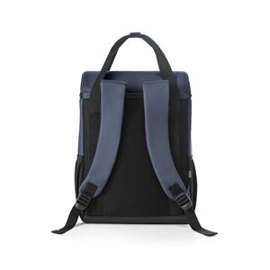 Descrição: Mochila térmica almofadada em ripstop poliéster reciclado 600D. É composta por dois correias frontais que facilitam no transporte de objetos, um compartimento principal espaçoso com fecho duplo, dois bolsos laterais em tela mesh para pequenos objetos e alças ajustáveis para assegurar um maior conforto no transporte. O interior forrado em PEVA garante um bom isolamento térmico permitindo a conservação do frio por mais tempo e a sua higienização. A robustez dos materiais que a compõe conferem-lhe uma grande resistência e durabilidade, pensado para as necessidades do cotidiano. Capacidade até 16 L. Certificação EU Food Grade. 280 x 400 x 160 mm