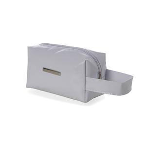 Descrição: Nécessaire impermeável de vinil com plaquinha metálica para personalização, possui alça lateral, zíper e forro de tnt. Possui plaquinha metálica fixa no centro, para gravação Largura 18,5 cm Medidas aproximadas para gravação(CxL): 5,5 cm x 0,9 cm Peso aproximado(g): 100 Profundidade 8,5 cm Comprimento Alça: 20,5cm Altura 11,5 cm