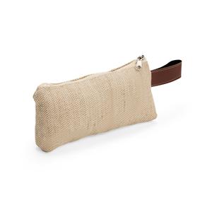 Descrição: Nécessaire compacto feito em juta, alça de mão lateral em bidim e fechamento em zíper. Largura 21 cm Medidas aproximadas para gravação(CxL): 6 cm x 18 cm Peso aproximado(g): 30 Profundidade 3 cm Altura 9 cm