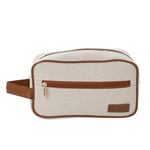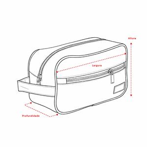 Descrição: Nécessaire confeccionada em lona e fechamento em zíper. Possui bolso frontal e compartimento principal com três bolsos internos, além de alça lateral e plaquinha costurada em couro sintético. Largura 25 cm Medidas aproximadas para gravação(CxL): 1,5 cm x 4,5 cm Peso aproximado(g): 147 Profundidade 10 cm Comprimento Alça 16,5 cm Altura 14,5 cm