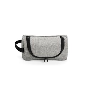 Descrição: Nécessaire confeccionado em nylon resistente à água e fechamento em zíper. Possui divisória interna em tela de nylon e alça lateral para transporte. Largura 21,5 cm Medidas aproximadas para gravação(CxL): 10 cm x 10 cm Peso aproximado(g): 67 Profundidade 8 cm Altura 13,5 cm