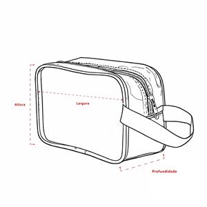 Descrição: Nécessaire impermeável em PVC com fechamento em zíper e alça lateral em nylon. Largura 20 cm Medidas aproximadas para gravação(CxL): 11 cm x 18 cm Peso aproximado(g): 65 Profundidade 7 cm Altura 13,5 cm