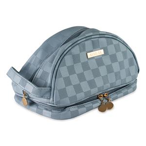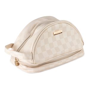 Descrição: Um acessório sofisticado e versátil para itens essenciais de beleza e cuidadoi! Feita em couro sintético PU de alta qualidade, esta nécessaire combina elegância e funcionalidade com um design moderno e detalhes em padrão xadrez. Perfeita para organizar maquiagens e produtos de higiene, ela é à prova dágua e possui zíperes individuais para fechar os compartimentos superior e inferior com segurança. Além disso, sua alça prática facilita o transporte, tornando-a ideal para o dia a dia ou viagens. Largura 25,5 cm Peso aproximado(g): 196 Profundidade 13 cm Altura 13,5 cm