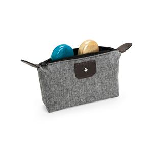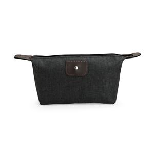 Descrição: Nécessaire compacto confeccionado em Poliéster com mescla de PVC resistente à água, com fechamento em zíper e detalhes em bidim e metal. Largura 22 cm Medidas aproximadas para gravação(CxL): 5 cm x 18 cm Peso aproximado(g): 50 Profundidade 5 cm Altura 11,5 cm