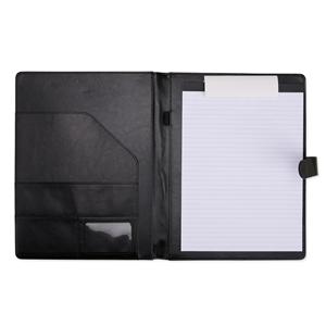Descrição: Organização impecável com estilo profissional. Nossa pasta executiva, feita em couro sintético de alta qualidade, acompanha um bloco de aproximadamente 20 folhas pautadas removíveis para anotações, suporte para caneta, bolsos para organizar folhas ou documentos, suporte para cartões, incluindo um com visor de identificação. Além disso, possui fechamento magnético, unindo praticidade e elegância em um único produto. Largura 24,1 cm Medidas aproximadas para gravação(CxL): 9 cm x 14 cm Peso aproximado(g): 540 Espessura 2,3 cm Altura 32 cm