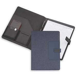 Descrição: Pasta convenção com bloco para anotações. Pasta confeccionada em material sintético, possui fecho imantado com plaquinha emborrachada, “bolso” interno para arquivar documentos, suporte para cartões, celulares e caneta, além de um bloco com folhas brancas pautadas de aproximadamente 22 folhas. Largura 24,5 cm Medidas aproximadas para gravação(CxL): 1,8 cm x 3,8 cm Peso aproximado(g): 479 Espessura 2,1 cm Altura 31 cm