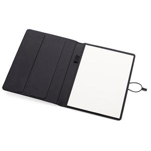 Descrição: Pasta convenção com capa almofadada em tecido de poliéster. Contém 20 folhas para anotação, Porta-Canetass, Porta-Documentoss e Porta-Cartões internos. Possui elástico lateral com detalhe em couro sintético para fechamento da pasta. Largura 25 cm Medidas aproximadas para gravação(CxL): 25 cm x 16 cm Peso aproximado(g): 485 Espessura 1,5 cm Altura 31,5 cm
