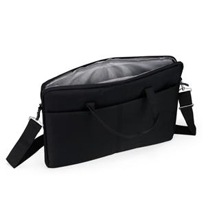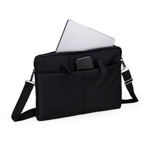Descrição: Pasta para notebook em poliéster impermeável, fechamento em zíper e capacidade para dispositivos de até 15,6 polegadas. Possui compartimento principal acolchoado e bolso frontal. Conta ainda com duas alças de mão, duas abas menores para encaixe de alça transversal removível e faixa posterior para acoplar em malas. Acompanha alça transversal ajustável. Largura 40 cm Medidas aproximadas para gravação(CxL): 16 cm x 38 cm Peso aproximado(g): 414 Profundidade 2 cm Altura 30 cm