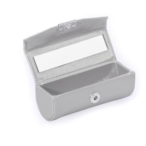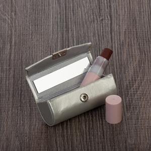 Descrição: Porta-Batons em couro sintético prata com plaquinha de metal frontal com botão para abrir/fechar, possui um espelho interno. Medidas aproximadas para gravação(CxL): 8,3 cm x 2,9 cm Peso aproximado(g): 26 Comprimento 8,9 cm Circunferência 11,8 cm Altura 3,7 cm