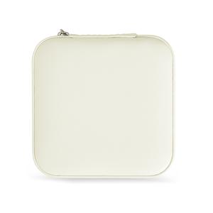 Descrição: Porta-joias feito em couro sintético com revestimento interno em tecido aveludado. Possui bolso elástico e três ganchos pequenos na parte interna da tampa, além de divisória multiuso e repartição almofadada com ranhuras para anéis, ambos localizadas no compartimento principal. Largura 9,8 cm Medidas aproximadas para gravação(CxL): 9 cm x 9 cm Peso aproximado(g): 106 Profundidade 9,9 cm Altura 4,9 cm