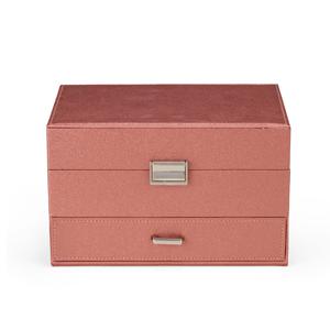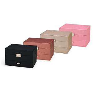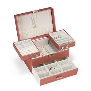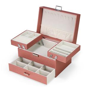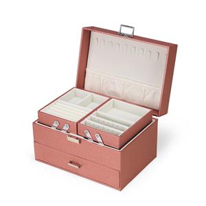 Descrição: Porta-joias em couro sintético com trava de fechamento em metal e uma gaveta com puxador e divisórias removíveis. Possui revestimento interno em veludo, além de dez ganchos e um bolso com elástico na parte interna da tampa. Apresenta ainda duas bandejas móveis com divisórias de tamanhos diferentes, permitindo a organização de itens variados. Largura 22,8 cm Medidas aproximadas para gravação(CxL): 2,5 cm x 20 cm (frente) - 14 cm x 20 cm (tampa) Peso aproximado(g): 1008 Profundidade 15,5 cm Altura 14 cm