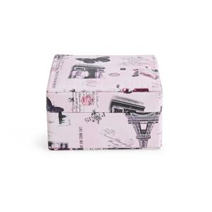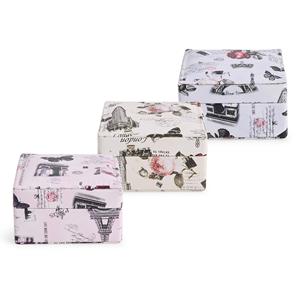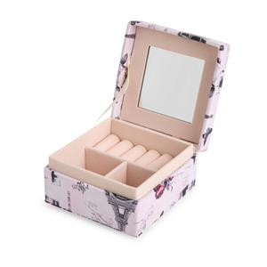 Descrição: Porta-joias em tecido sintético levemente texturizado e revestimento interno em veludo. Conta com espelho fixo no interior da tampa e um compartimento com três divisórias, uma delas com almofadas para anéis e brincos. Largura 9,2 cm Peso aproximado(g): 107 Profundidade 9 cm Altura 5 cm