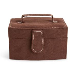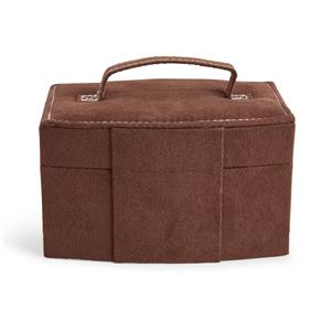 Descrição: Maleta porta-joias com revestimento aveludado e alça com botão magnético para fechamento. Possui espelho interno em formato retangular e compartimento removível com três divisórias, uma delas com almofadas fixas para anéis e brincos. Largura 15,3 cm Medidas aproximadas para gravação(CxL): 1,5 cm x 14 cm Peso aproximado(g): 243 Profundidade 10 cm Altura 9 cm