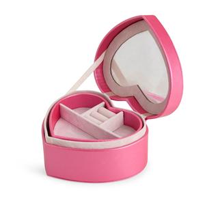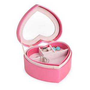 Descrição: Porta-joias em couro sintético com formato de coração e revestimento interno aveludado. Conta com espelho interno e dois compartimentos principais: o superior, removível, com quatro divisórias em diferentes tamanhos, uma delas com almofadas para abrigar anéis e brincos; e o inferior, com mais quatro divisórias. Largura 14,5 cm Medidas aproximadas para gravação(CxL): 8,5 cm x 10 cm Peso aproximado(g): 211 Profundidade 12,5 cm Altura 7,5 cm
