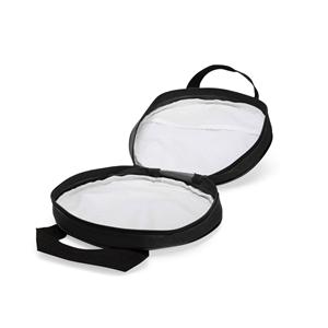 Descrição: Bolsa porta-pratos confeccionada em poliéster 600 impermeável, com fechamento em zíper e compartimento interno que inclui bolso em tela de nylon. Possui duas alças de nylon para transporte. Largura 25,5 cm Medidas aproximadas para gravação(CxL): 22 cm x 22 cm Peso aproximado(g): 163 Profundidade 5 cm Altura 25,5 cm