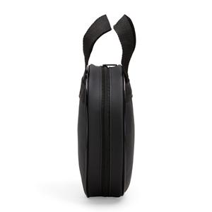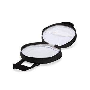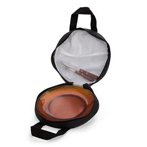Descrição: Bolsa porta-pratos em couro sintético e fechamento em zíper. Possui compartimento interno que inclui bolso em tela de nylon, além de duas alças para transporte. Largura 25,5 cm Medidas aproximadas para gravação(CxL): 16 cm x 16 cm Peso aproximado(g): 234 Profundidade 5 cm Altura 25,5 cm