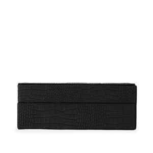 Descrição: Porta-relógios com acabamento em couro sintético. Conta com revestimento interno em veludo e seis compartimentos: quatro com almofadas removíveis, um para objetos menores e outro almofadado com ranhuras. Possui tampa com visor em vidro e trava de segurança. Acompanha chave para fechamento do estojo. Medidas aproximadas para gravação(CxL): 2 cm x 15 cm Peso aproximado(g): 609 Profundidade 20,2 cm Comprimento 16,2 cm Altura 7,7 cm