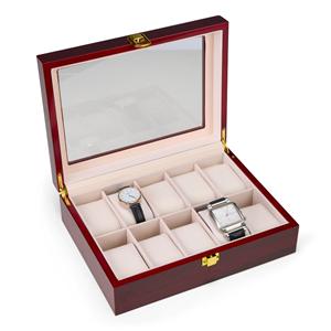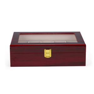 Descrição: Porta-relógios com estrutura em MDF de acabamento liso, dobradiças metálicas e revestimento interno em veludo. Conta com 10 divisórias com almofadas removíveis, visor em vidro e trava de segurança em metal para fechamento da tampa. Largura 26,5 cm Medidas aproximadas para gravação(CxL): 2,5 cm x 25 cm Peso aproximado(g): 1100 Profundidade 19,5 cm Altura 8 cm