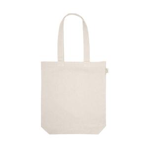 Descrição: Sacola em 70% algodão reciclado e 30% poliéster reciclado (220g/m²), com alças de 65 cm. O tecido é sem tingimento, e utilizado na sua cor original, sem produtos químicos de tingimento ou branqueamento, contribuindo para um menor impacto ambiental. 380 x 420 x 100 mm