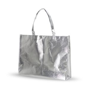 Descrição: Sacola TNT metalizada 110g/m² com botão. Confeccionado em TNT com revestimento plástico laminado, parte superior possui botão plástico para fecho. Largura 45,5 cm Medidas aproximadas para gravação(CxL): 32 cm x 43 cm Peso aproximado(g): 67 Tamanho total aproximado (CxL): Alça 22 cm Profundidade 11,5 cm Altura 35 cm
