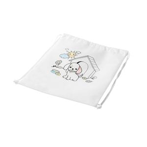Descrição: Sacola tipo mochila para colorir em TNT (80 g/m²) com desenho impresso e bolso interior. A sacola tem incluso 6 gizes de cera. 300 x 350 mm