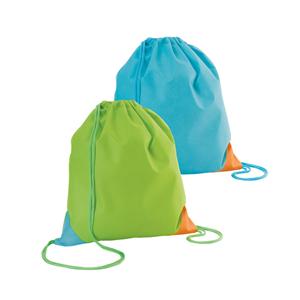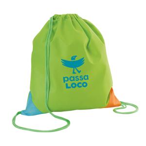 Descrição: acola tipo mochila em TNT (80 g/m²) com cantos triangulares coloridos. 300 x 350 mm