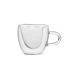 Descrição: Xícara de vidro com capacidade para até 80ml. Possui contorno interno em formato de coração e estrutura de parede dupla que ajuda a impedir que a temperatura de líquidos entre em contato com a parte externa. Largura 9,7 cm Medidas aproximadas para gravação(CxL): 5 cm x 6 cm Peso aproximado(g): 60 Circunferência 21,5 cm Altura 6,2 cm