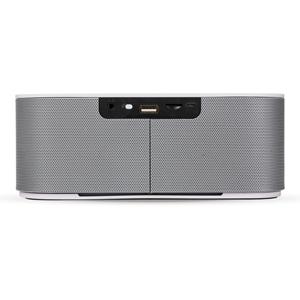 Descrição: Caixa de som multimídia com estrutura feita em plástico, revestimento metálico e detalhes em material antideslizante na base. Possui conexão Bluetooth e rádio FM, além de painel de botões para controlar a reprodução de músicas a partir de aparelhos pareados, pen drives ou cartões microSD, por meio das entradas USB-A e TF. Conta ainda com entrada auxiliar P2 e acompanha cabo micro-USB para carregamento do aparelho. Largura 20 cm Medidas aproximadas para gravação(CxL): 5 cm x 6 cm Peso aproximado(g): 570 Espessura 6 cm Altura 7,5 cm