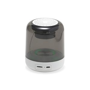 Descrição: Caixa de som multimídia em plástico com iluminação em LED. Conta com painel de botões localizado na base que permite controlar os modos de conexão Bluetooth 5.3, rádio FM e reprodução de arquivos MP3 através da entrada para cartão TF (microSD). Acompanha cabo micro-USB para carregamento. Largura 8,4 cm Medidas aproximadas para gravação(CxL): 1,5 cm x 6 cm Peso aproximado(g): 205 Circunferência 26,9 cm Altura 10,3 cm
