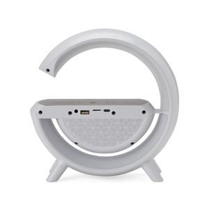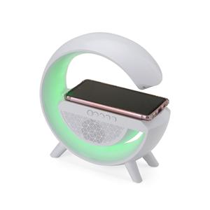 Descrição: Caixa de som multimídia com estrutura em plástico, iluminação em LED ajustável e espaço para carregamento de dispositivos por indução. Possui conectividade Bluetooth 5.2 e rádio FM, além de entradas auxiliar P2, USB-C, USB-A e TF, possibilitando a reprodução de arquivos MP3 a partir de pen drives e cartões microSD. Acompanha cabo USB-C para recarga da caixa. Largura 23 cm Medidas aproximadas para gravação(CxL): 1,7 cm x 4,5 cm Peso aproximado(g): 645 Espessura 8 cm Altura 21,9 cm