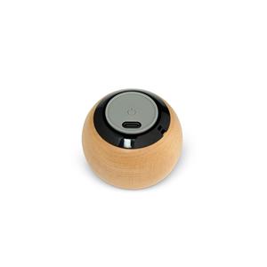 Descrição: Caixa de som sem fio com estrutura em madeira e inox, além de base em material antiderrapante. Possui entrada USB-C para carregamento, conexão Bluetooth e compatibilidade com a tecnologia TWS, que permite sincronizar duas caixas de som ao mesmo tempo. Acompanha USB-C. Largura 5,8 cm Medidas aproximadas para gravação(CxL): 2 cm x 4 cm Peso aproximado(g): 101 Circunferência 18,4 cm Altura 4,2 cm