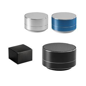 Descrição: Caixa de som com microfone em alumínio, com transmissão por