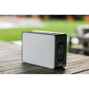 Descrição: Caixa de som em ABS 100% reciclado com 80W de potência. A capacidade da bateria é de 5.200 mAh, o que permite uma autonomia aproximada de 7h. Tem equalizador com 3 modos, transmissão BT 5.3, entrada e saída AUX e permite ligar microfone externo ou guitarra diretamente. Possibilidade de emparelhar duas caixas de som Jouncer para efeito stereo. Incluso carregador e uma alça para transporte da caixa de som ao ombro. Fornecido em caixa presente de papel kraft reciclado. A grelha é fornecida solta para pedidos não personalizados. 293 x 198 x 105 mm | Caixa: 330 x 309 x 147 mm