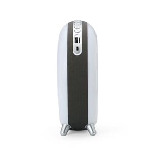 Descrição: Caixa de som multimídia em formato de concha com luminária com sete modos de iluminação RGB, além de faixa em poliéster e revestimento emborrachado antiderrapante nos pés. Possui conexão Bluetooth, rádio FM e compatibilidade com a tecnologia TWS. Dispõe ainda de painel de botões para controlar a reprodução de músicas a partir de aparelhos pareados, pen drives ou cartões microSD, por meio das entradas USB-A e TF. Acompanha Cabo USB-C para carregamento. Largura 17 cm Medidas aproximadas para gravação(CxL): 4 cm x 6 cm Peso aproximado(g): 410 Profundidade 7,3 cm Altura 21 cm