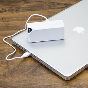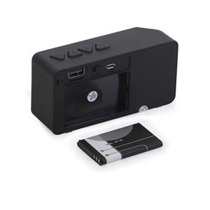 Descrição: Caixa de som multimídia com estrutura em plástico e metal e detalhes emborrachados na base. Possui conexão Bluetooth e rádio FM, além de painel de botões para controlar a reprodução de músicas a partir de aparelhos pareados, pen drives ou cartões microSD, por meio das entradas USB-A e TF. Conta ainda com porta auxiliar P2 e botão para atender chamadas. Acompanha cabo micro-USB com ponta dupla USB e P2. Largura 10,7 cm Medidas aproximadas para gravação(CxL): 3 cm X 8 cm Peso aproximado(g): 163 Espessura 3,6 cm Altura 5,5 cm