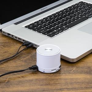 Descrição: Caixa de som multimídia com Bluetooth e rádio FM. Feita em metal com detalhes plásticos, possui: botão Off/On; O botão de rotação tem algumas funções: >|| ao ser pressionado serve como Play/Pause, quando segurado ele alterna entre os modos de reprodução; ao rotacionar para esquerda <<- retrocede a faixa e quando segurado diminui o volume; ao rotacionar para direita +>> avança a faixa e quando segurado aumenta o volume; entrada para cartão MicroSD; Microfone; Entrada DC 5V/AUX além de utilizada para conectar o cabo para carregamento, necessário plugar o cabo nesta entrada para conseguir a sintonização no modo rádio(quando estiver neste modo, aperte o botão >|| para o início da sintonização). Falante de 3W. Acompanha cabo USB. Largura 5,9 cm Medidas aproximadas para gravação(CxL): 4,5 cm x 2,5 cm Peso aproximado(g): 235 Espessura 18,5 cm Altura 5 cm