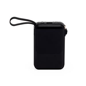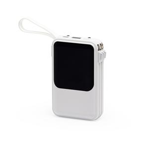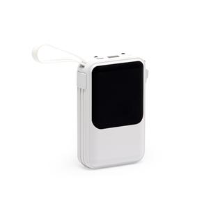 Descrição: Carregador power bank de 10.000mAh com lanternas e múltiplas saídas. Fabricado em plástico com display integrado, este power bank vem equipado com quatro cabos de carregamento, eliminando a necessidade de transportar cabos extras. Compatível com entradas V8, Tipo-C, Lightning e USB, praticidade é o sinônimo deste carregador. Com alça de borracha e um tamanho compacto para um transporte discreto, ele possui uma capacidade real de 6.000mAh para manter os dispositivos sempre carregados. Acompanha cabo USB-V8. Largura 6,7 cm Medidas aproximadas para gravação(CxL): 2 cm x 3,5 cm Peso aproximado(g): 215 Espessura 2,7 cm Altura 10,6 cm