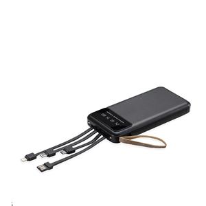 Descrição: Carregador power bank de 10.000mAh com lanternas, múltiplas saídas e suporte para celular. Fabricado em plástico com display integrado, este power bank vem equipado com quatro cabos de carregamento, eliminando a necessidade de transportar cabos extras. Compatível com entradas V8, Tipo-C, Lightning e USB, praticidade é o sinônimo deste carregador. Com alça de couro sintético e um suporte funcional para celular, estilo gaveta, o power bank possui capacidade real de 6.000mAh para manter os dispositivos sempre carregados. Acompanha cabo USB-V8. Largura 6,8 cm Medidas aproximadas para gravação(CxL): 8 cm x 4 cm Peso aproximado(g): 251 Espessura 2 cm Altura 14,4 cm
